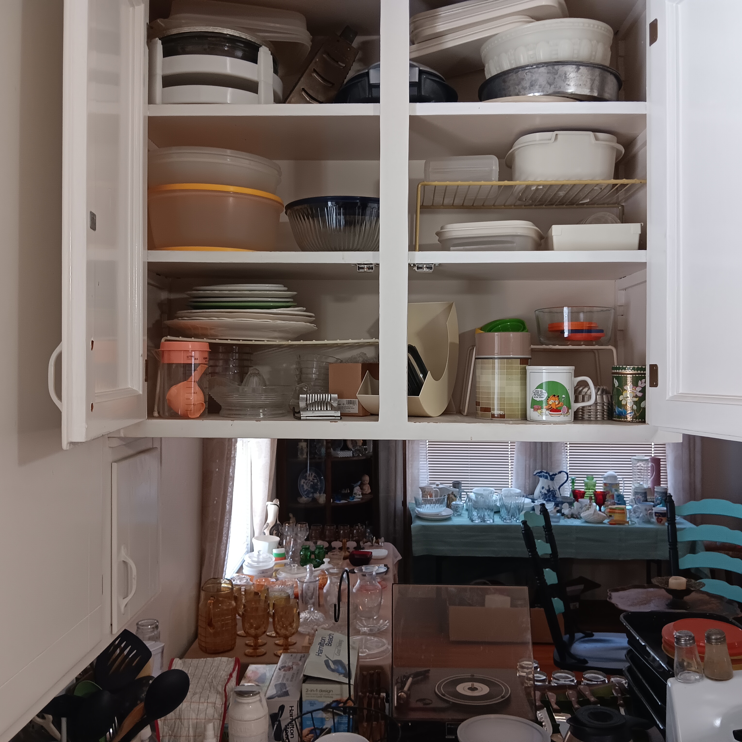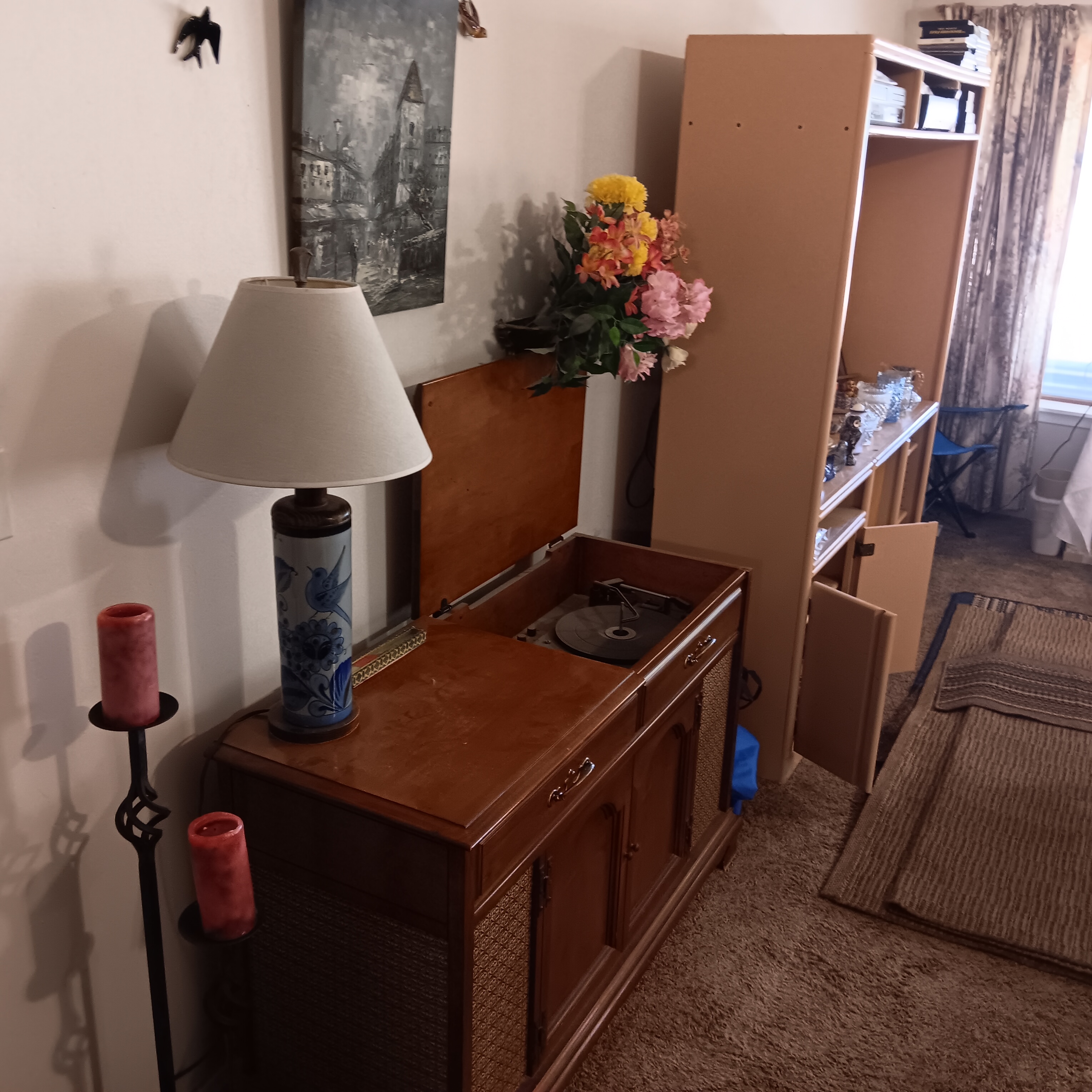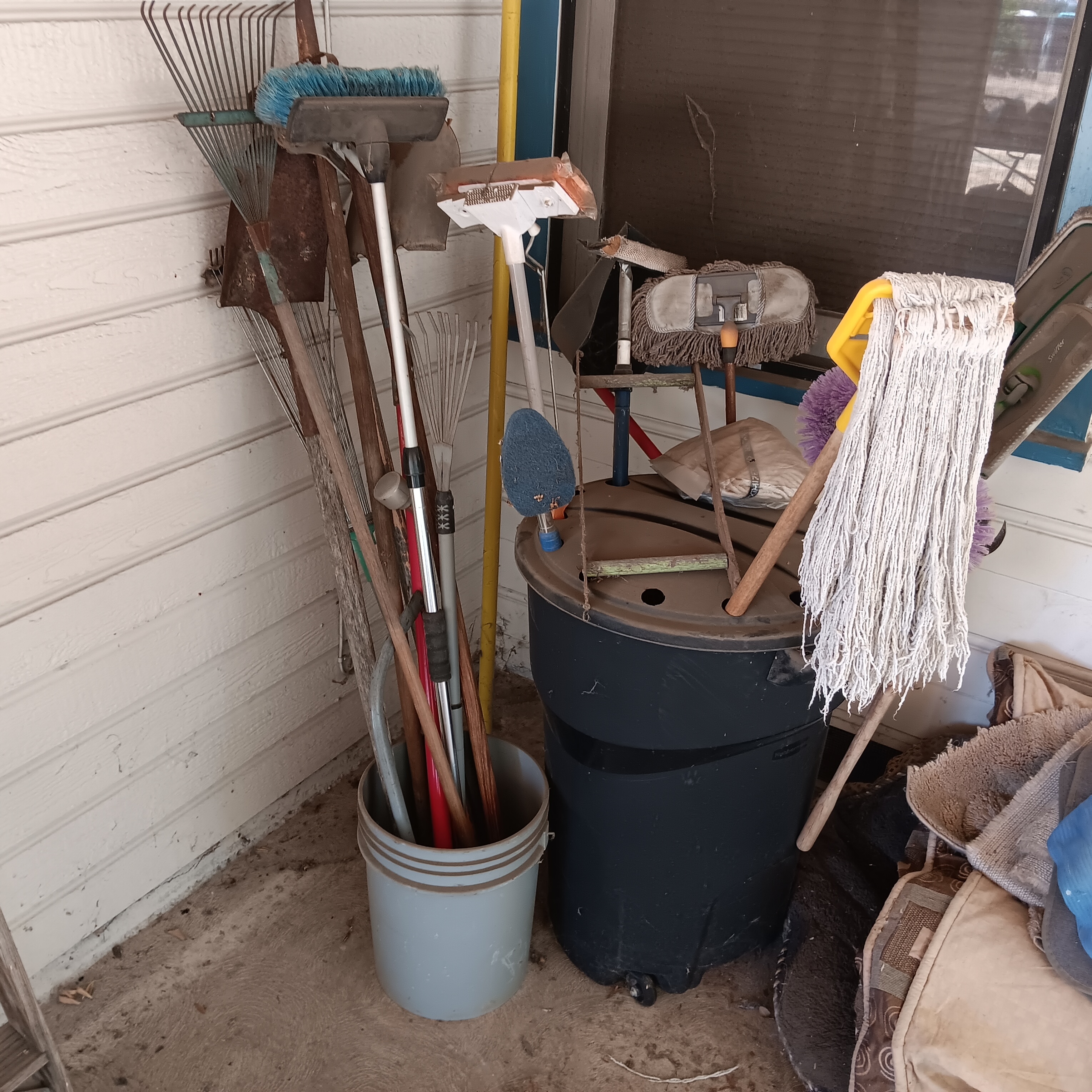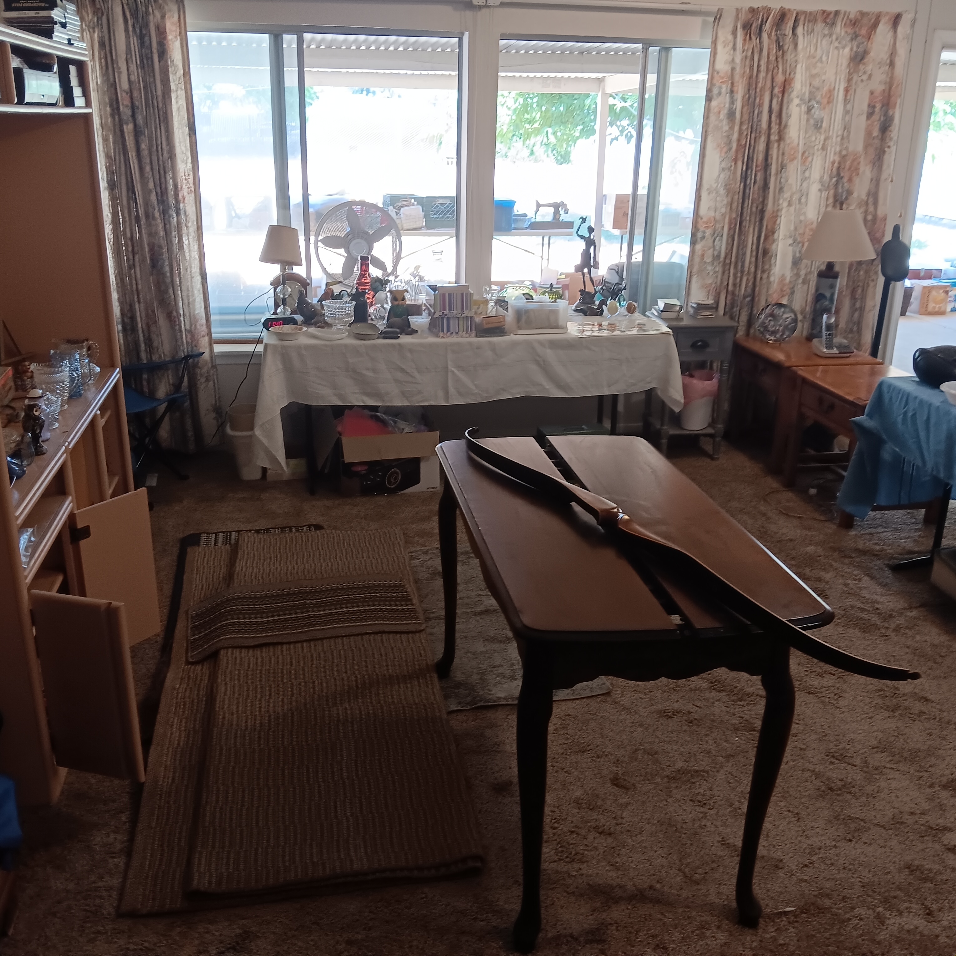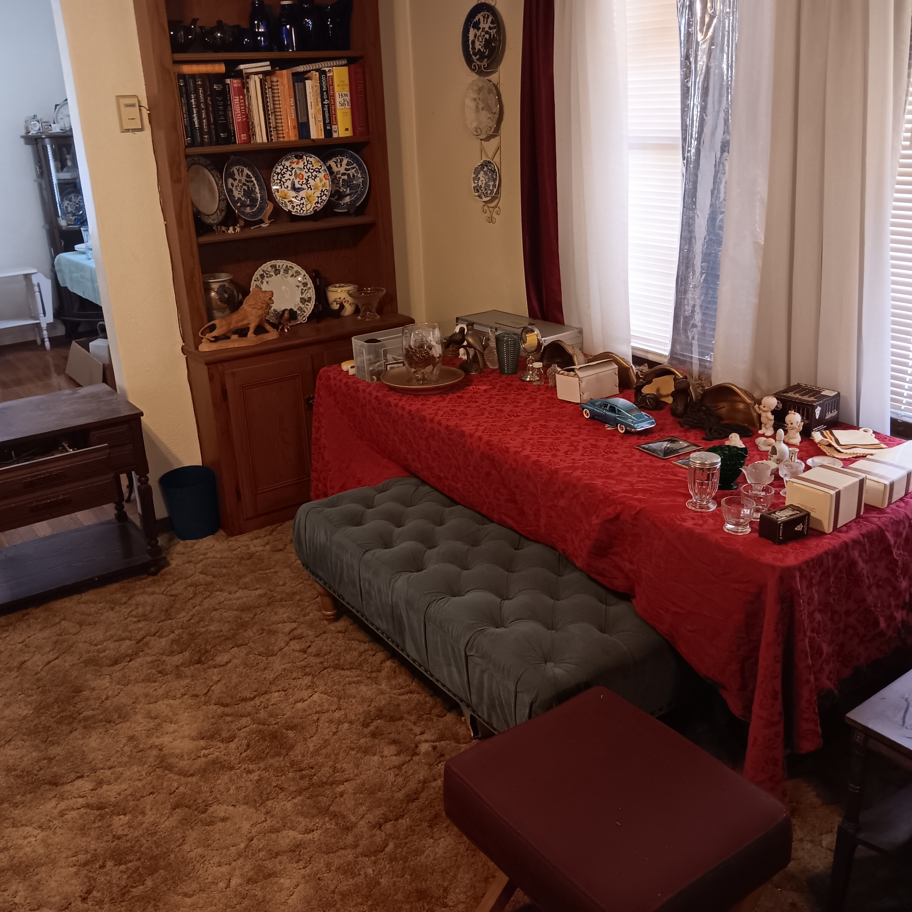 Tools, records, record players, plumbing, vintage lamps, furniture, household décor, vintage Tupperware, Pyrex, record cabinet, hand crank singer, men’s clothing, Honda mower, edger, vintage bicycles, an abundance of craft supplies, office supplies, quilts, Kirby vacuum, canning jars galore, washer/dryer ( electric), Revere pots and pans, cast iron, air compressor, like new bed we only just moved outside.