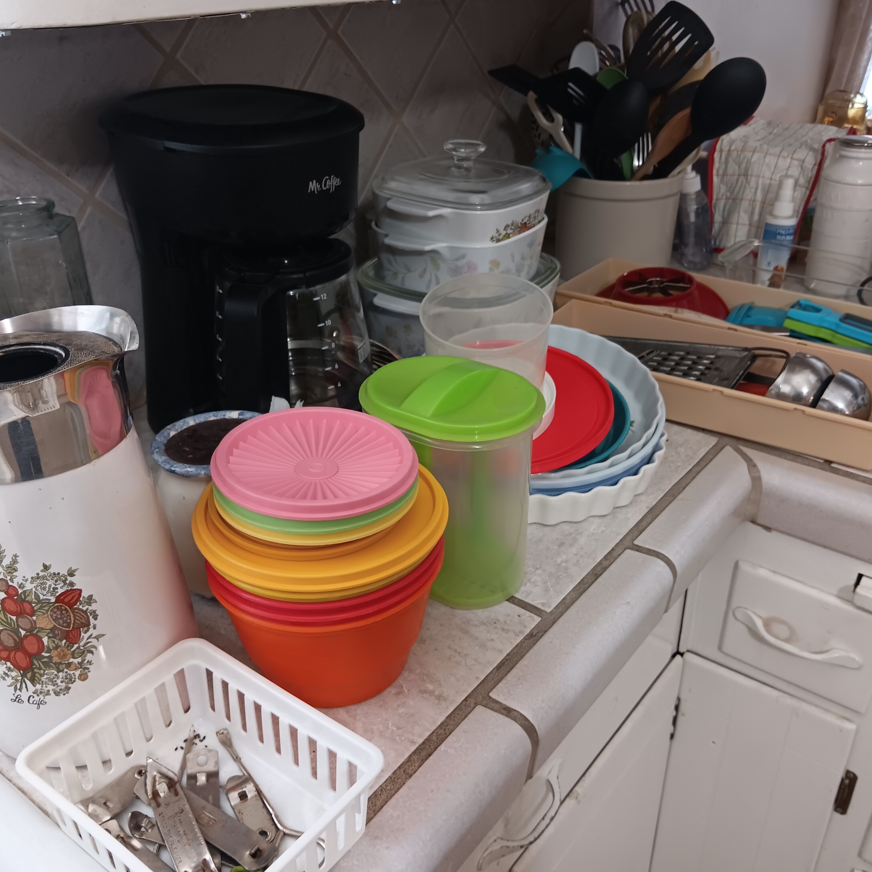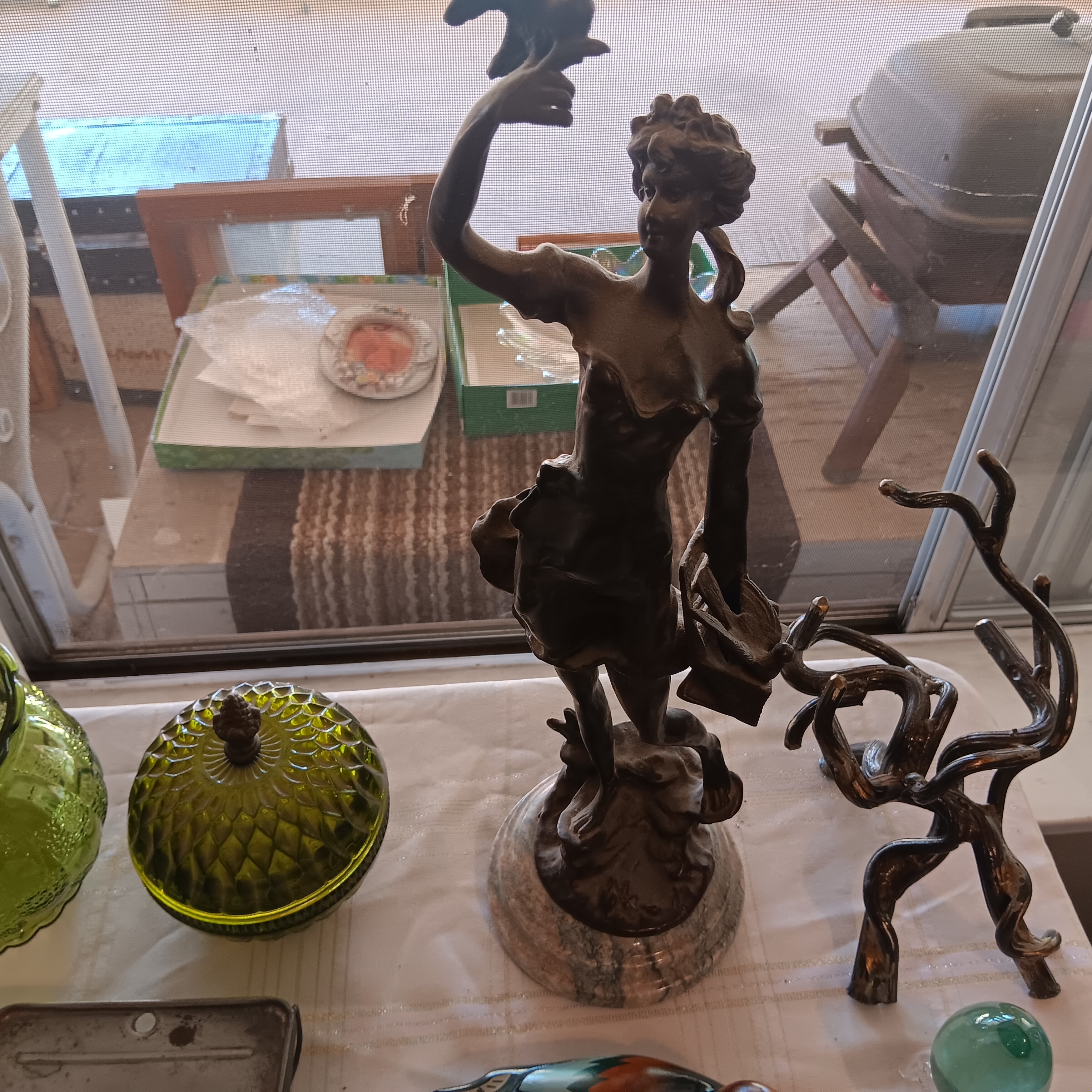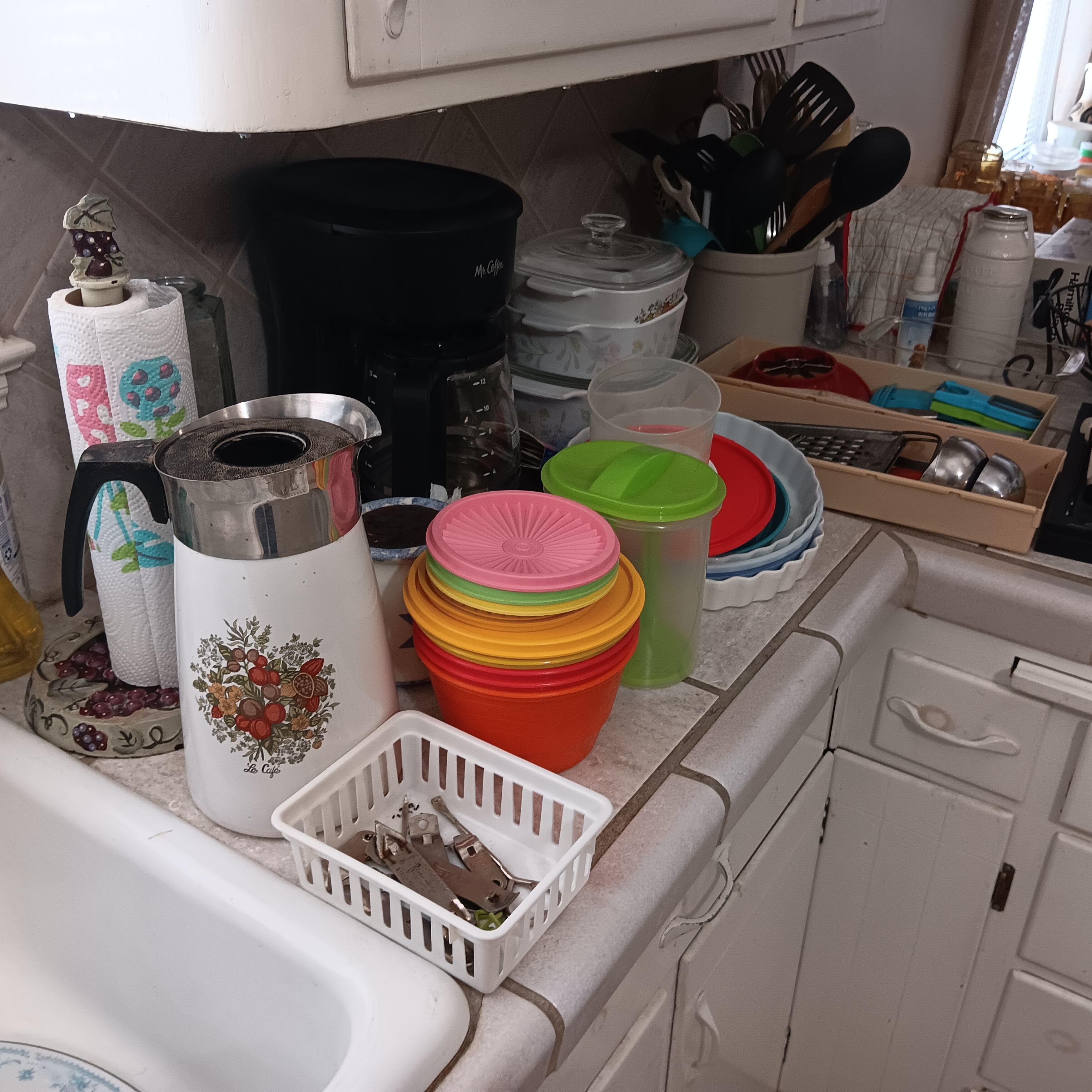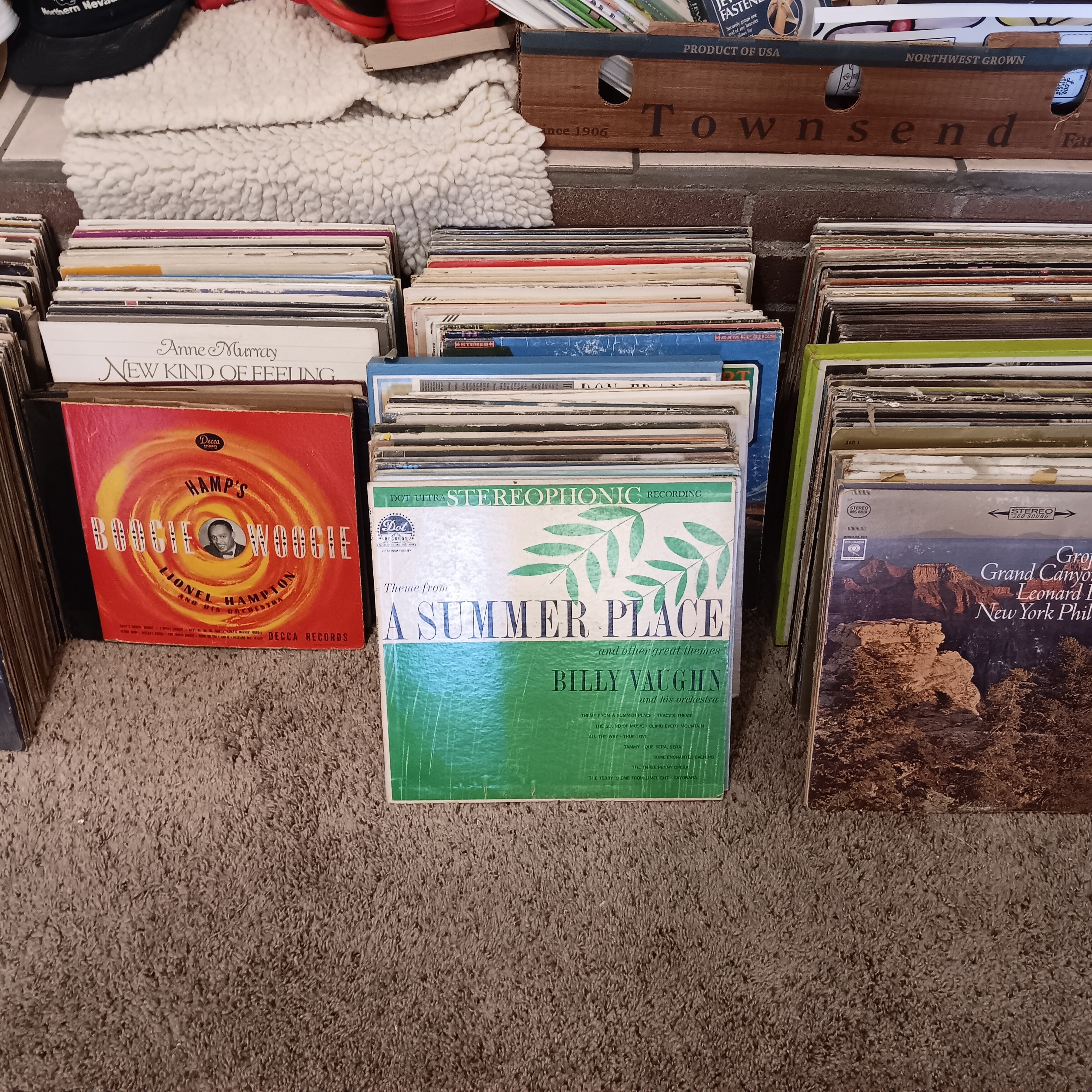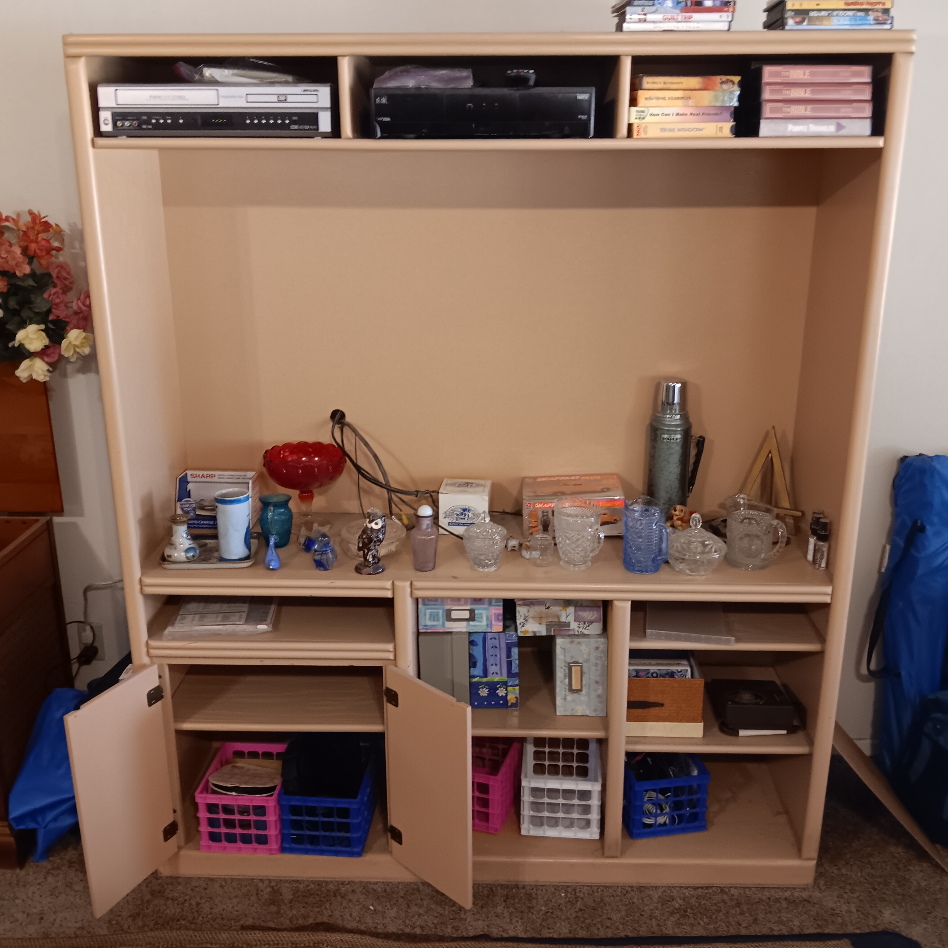 Tools, records, record players, plumbing, vintage lamps, furniture, household décor, vintage Tupperware, Pyrex, record cabinet, hand crank singer, men’s clothing, Honda mower, edger, vintage bicycles, an abundance of craft supplies, office supplies, quilts, Kirby vacuum, canning jars galore, washer/dryer ( electric), Revere pots and pans, cast iron, air compressor, like new bed we only just moved outside.